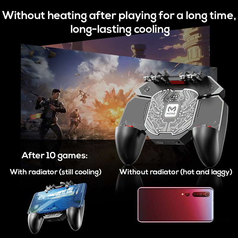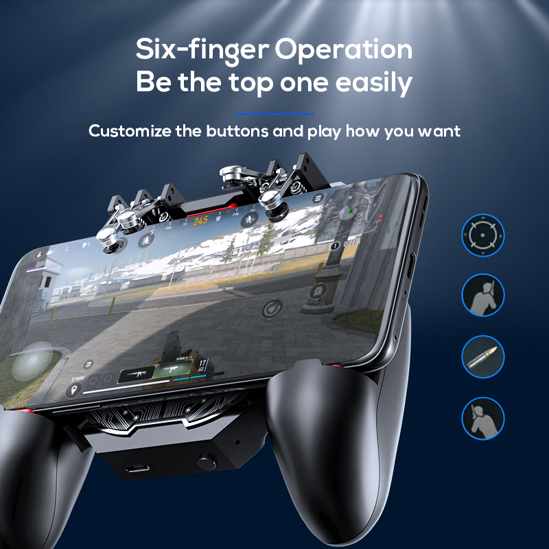 - کنترل ۶ انگشتی با ماشههای فلزی برای بازیهایی مانند پابجی ، کالاف دیوتی ، وازون ، فری فایر و ... .