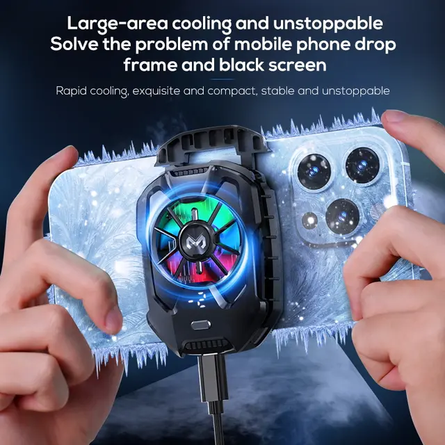 🔹 معرفی کلی فن خنککننده ممو Memo DLA8 یکی از پیشرفتهترین خنککنندههای گیمینگ موبایل است که با فناوری TEC + هیت سینک حرفهای، خنککنندگی سریع و پایدار را برای گوشیهای iOS و اندروید فراهم میکند. این مدل، نسخه ارتقایافته Memo DLA7 است و با چیپست جدید و فن پرسرعت، عملکردی چندین برابر بهتر از خنککنندههای معمولی ارائه میدهد.