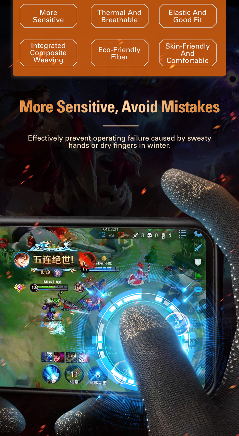 با استفاده از فیبر نقرهای رسانا، این دستکشها به شما امکان میدهند بدون کوچکترین کاهشی در حساسیت، صفحه گوشی را لمس کنید. هر ضربه را با دقت ثبت کنید! - جلوگیری از خطا (Avoid Mistakes):